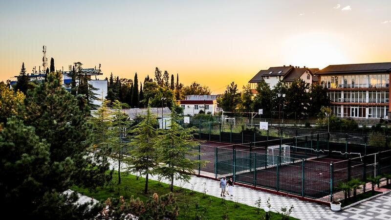 Семейный отдыхДостоинстваНа территории пансионата много цветов, всё красиво, мне понравилось, но хотелось бы ещё кипарисов. До моря недалеко, в номере хорошо и чисто. К питанию никаких претензий.