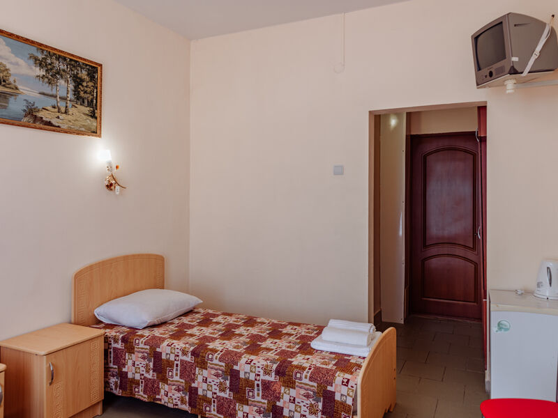 В пансионат входит шестиэтажный жилой корпус и 20-ти местный коттедж. Жилой фонд способен единовременно вместить 290 человек. Номерной фонд представлен однокомнатными номерами категорий Стандарт и двухкомнатные Полулюкс. Все номера оснащены необходимой бытовой техникой, есть собственный санузел и имеются меблированные балконы.