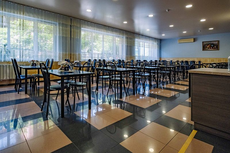 Можно заказать обед и ужин в столовой, где действует разнообразное семидневное меню: супы, салаты, закуски, мясные и рыбные блюда. А завтраки уже входят в стоимость проживания!