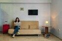 Номер предусматривает пятиместное размещение: 3 основных места и 1 дополнительное. Номер очень просторный и светлый. Прекрасно подходит для большой семьи. В номере одна двуспальная кровать и одна односпальная кровать, а также диван-кровать. Номер имеет выход на просторную террасу.
