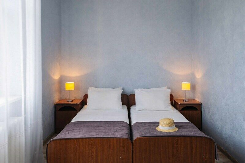 Номер предусматривает трехместное размещение. В номере две односпальных кровати. Предусмотрено 1 дополнительное место. Номера очень просторные и светлые. Вид из окна открывает панораму зеленной улицы.
