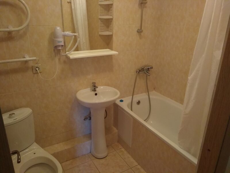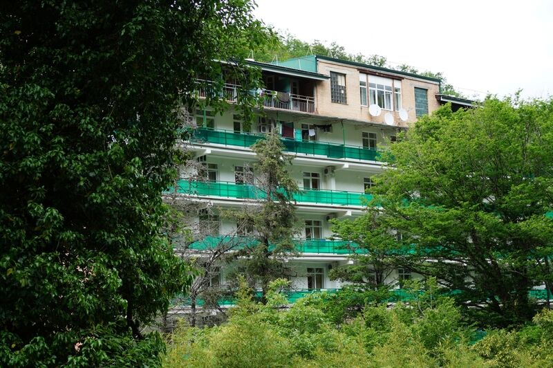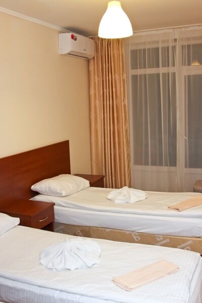 Главный шестиэтажный корпус отеля разместился на благоустроенной территории площадью 5 гектаров. На территории, окруженной лесом, много дорожек и аллей. Обширный жилой фонд, способный единовременно принять более 360 человек, предлагает гостям комфортабельные номера с удобствами. В каждом номере предусмотрен персональный санузел с ванной или душем, комнаты оснащены кондиционером, есть телевизор и безлимитный интернет.