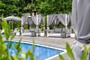 Просторный открытый бассейн с подогревом, доступный в любое время года. Устройтесь на мягких шезлонгах под тенью больших зонтов или насладитесь комфортом и уединением в бунгало, идеально подходящих для семейного общения или веселой компании.