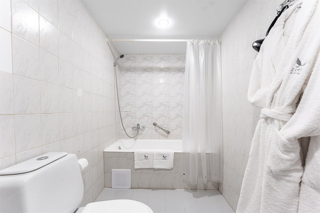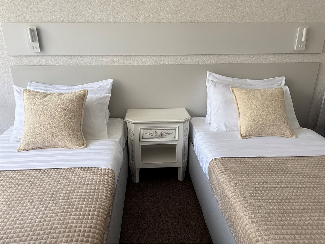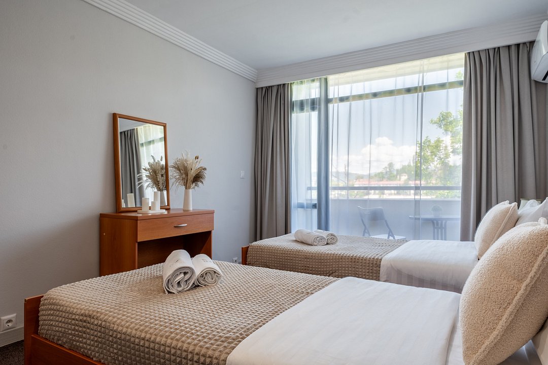 Отличный выбор для тех, кто ценит практичность и удобство. В номере: двуспальная кровать или две односпальные кровати , телевизор, холодильник, фен, чайный набор, а также ванная комната с душем. Спокойная цветовая гамма и ненавязчивый интерьер создают приятную атмосферу для отдыха и восстановления.Услуги и удобства