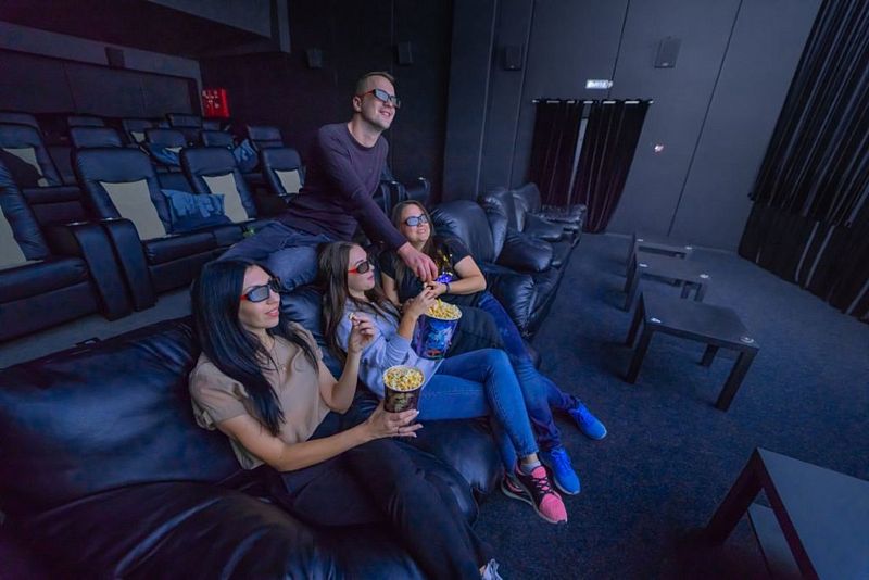 К вашим услугам четырехзальный современный кинотеатр 2D и 3D-формата, большие экраны, отличный звук, климат-контроль, вкусный попкорн, мировые премьеры каждый четверг! Скидки по средам и ночные вечерние сеансы по дисконтной цене.