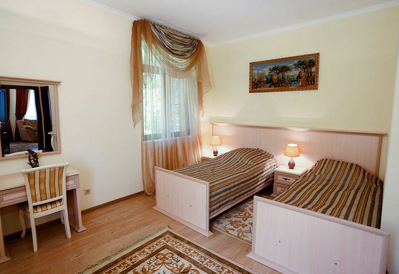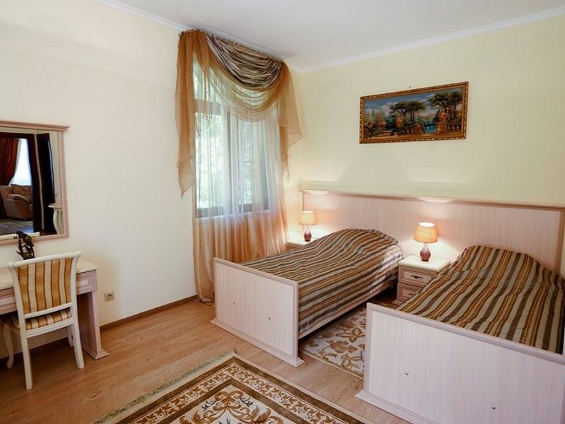 Отель понравится тем гостям, кто хочет безмятежного отдыха, прогулок по аллеям парка, оздоровительных процедур, уюта и тишины. Он одинаково удобен для семей с детьми, молодёжи и пожилых людей, романтических пар, дружеских компаний. К услугам бизнесменов, сочетающих отдых с работой – комната для переговоров и другие конгрессные возможности. На собственной территории комплекса пансионата площадью в 2 га, состоящего из двух корпусов, много мест для активного и релакс-отдыха, масса зелёных субтропических растений, полянки, беседки, столики и скамейки, прогулочные аллеи, места для пикника и барбекю, терраса-солярий и другие удобства. С возвышенности, на которой он расположен, и из окон корпусов открываются великолепные виды побережья, горных отрогов, дендрапарка.