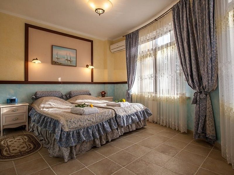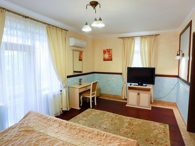 НедостаткиРасположение, конечно, оставляет желать лучшего: до различных магазинов, развлекательных центров, кафе ехать далеко, идти тем более, так как они в центре все. Попался номер люкс, однако вид его не открывался на море, что было очень печально. Найти пансионат трудно, указателей нет. Помогла лишь дача Сталина, она поблизости.
