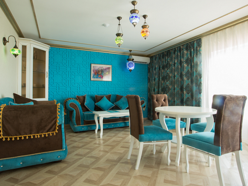 Гостям предлагается проживание в номерах различной комфортности расположенных в пятнадцатиэтажном здании с лифтом, пользование тренажерным залом, балконы в номерах с красивым видом на море и горы. Так же в номерах имеется холодильник, кондиционер, TV, мебель, телефон и радио, сейф. Детям оборудованы площадки, игровая комната, работают аниматоры, воспитатели. А также лечение с 5 лет.