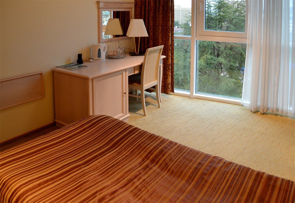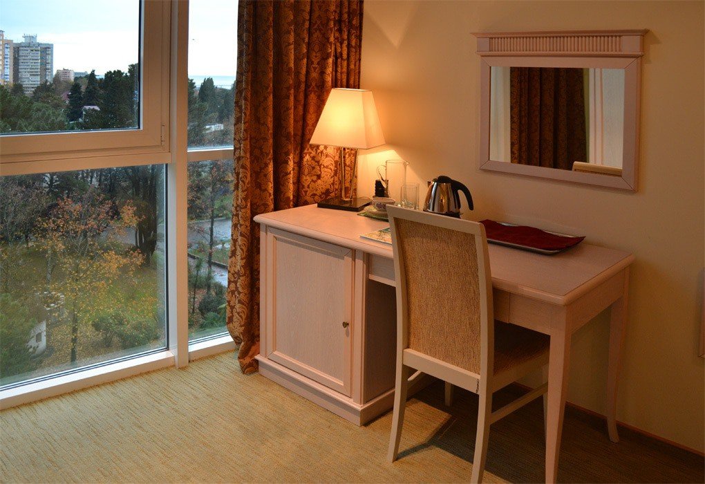 Территория пансионата находится в центре Сочи и располагается на территории в почти 6 гектаров. В семиэтажном спальном комплексе уместился ресторан, крытый бассейн, лечебно-оздоровительный комплекс и клуб. Для гостей пансионата, приехавших на своем авто, предусмотрена бесплатная охраняемая парковка. Для любителей активного отдыха имеется тренажерный зал, теннисный корт, бильярд, шахматы. Для уединения вы можете посетить библиотеку с читальным залом.