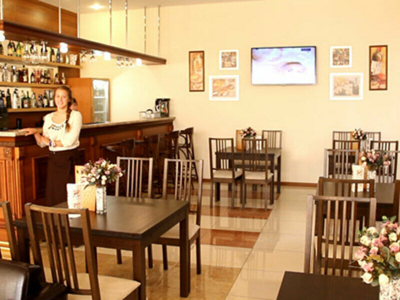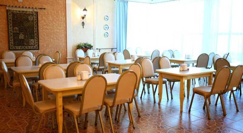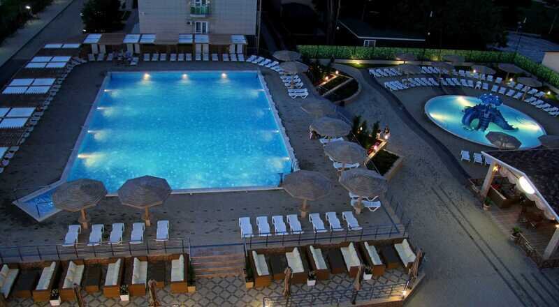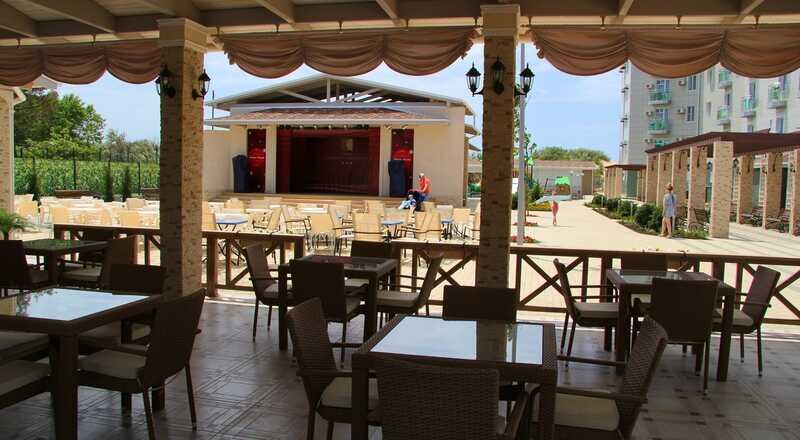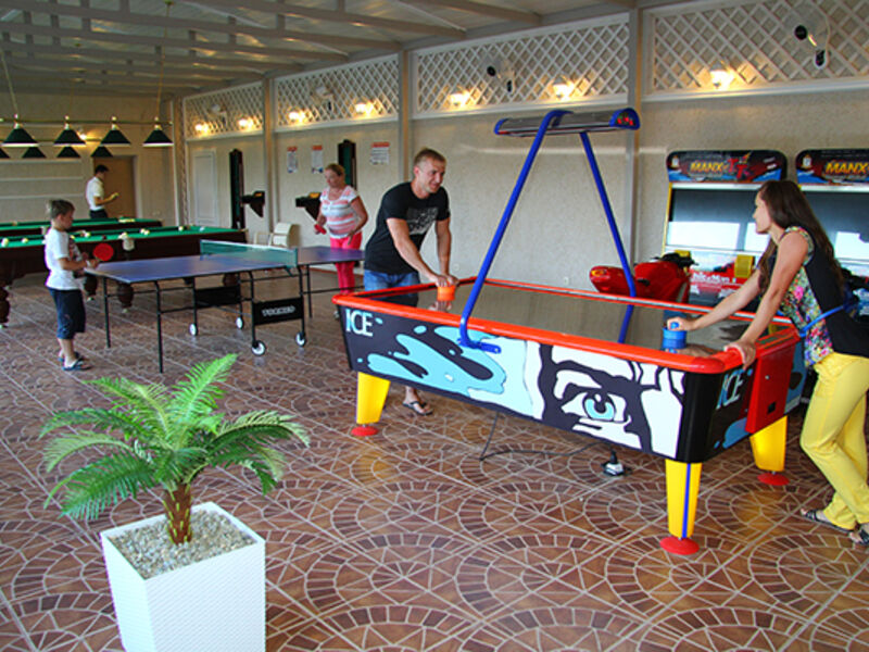 Питание гостей организовано три раза в день в столовой пансионата. В зале питания есть стульчики для кормления малышей. К услугам гостей – сезонный бассейн и детский, оба подогреваемые и окруженные релакс-зоной, имеется бар. Также на территории пансионата работает банный комплекс, массажный и косметологический кабинеты, салон красоты. Для любителей активного отдыха работают тренажерный зал и спортзал. Для маленьких гостей отеля оборудован игровой городок, есть детская комната с воспитателем игровые автоматы. Анимационные мероприятия для детей и взрослых проводятся регулярно.