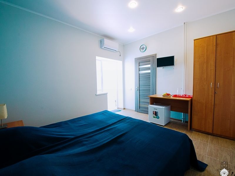 Площадь номера: прихожая – 15,2 м2, с/у – 1,6м2, душевая – 1,5м2, комнаты – 10,6 м2 и 21,3м2. Вход в су с большой комнаты, в душевую с прихожей. В большой комнате есть балкон. В большой комнате 2-х спальная кровать, в маленькой комнате односпальная кровать.
