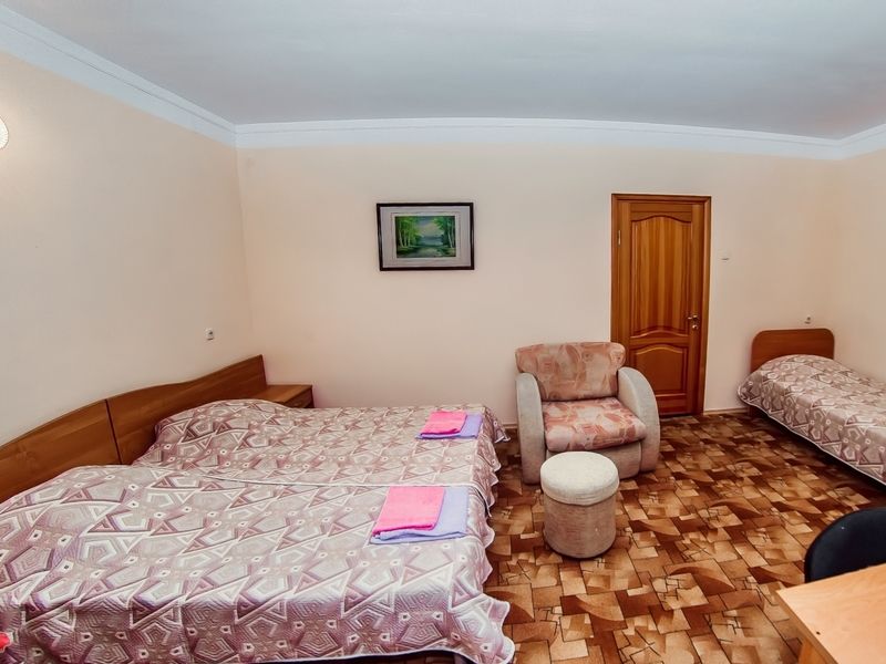 Номер, состоит из 2-х жилых комнат с двумя/тремя кроватями, с раздельным санузлом (туалет и душ) в блоке из двух комнат. В данной категории имеются 2-х (Б) и 3-х (А) местные комнаты. В 3-х местной комнате есть балкон. Данная категория номеров рекомендована для больших компаний и семей.