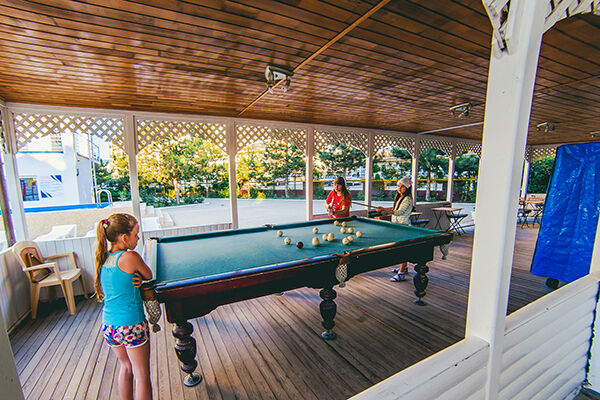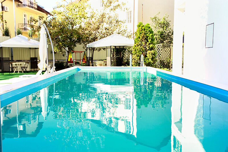 На территории отеля «Шихан» расположен открытый бассейн, возле которого находятся шезлонги, малые беседки с садовой мебелью и садовые качели. На просторной веранде рядом с бассейном мы установили бильярдный и теннисный столы.