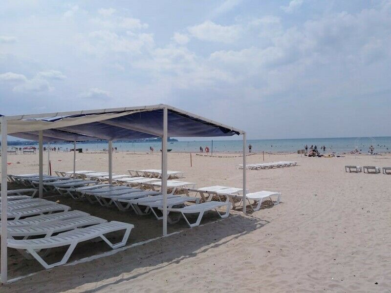 Инфраструктура: лежаки, зонтики, шезлонгиПесчаный пляж
