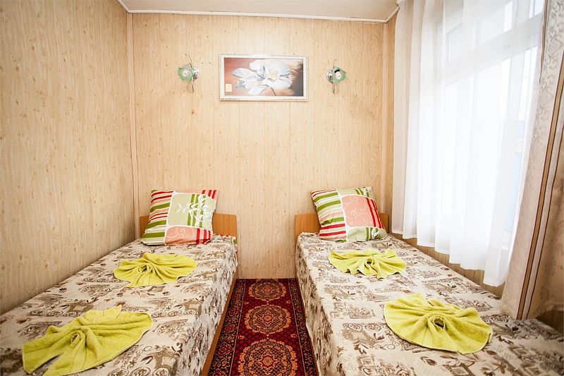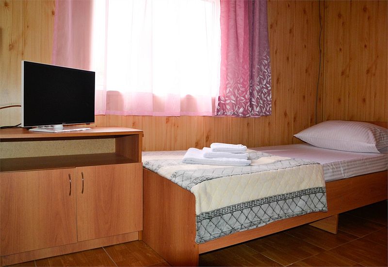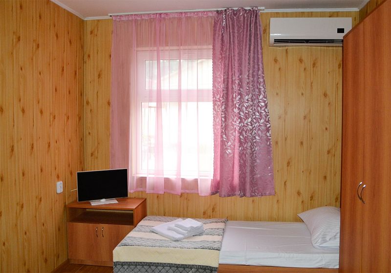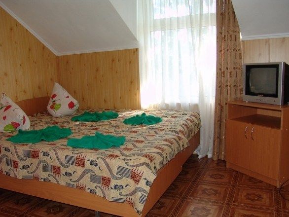 Нам все понравилось. Давно знали о данном пансионате, сестра сюда каждый год приезжает. И вот решились и мы. Мы ездили с годовалым сыном. Ехали на машине, заранее не бранировали, позвонила, уточнила есть ли свободные номера. Приехали мы в 8 вечера. Нам сразу сказали, что номера эконом выходят на танцпол и будет шумно. Мы взяли стандарт. Кондиционер, телевизор, холодильник. Все работало. Чайник в номере не предусмотрен, но на нашу просьбу, предоставили. Территория небольшая, но мы приехали на море, а не сидеть в номере. Далее, столовая чистая, вкусно кормили, сын щёки наел)). Рыба была каждый день, мясо, котлеты... Все было. Самое главное мы ни разу не выпили таблетки, с животами все в порядке! Из фруктов яблоки и апельсины. Сходили на рынок подкупили фруктов. Персонал на кухне отличный, приветливый! Есть детские стулья для кормления. Детская площадка конечно не очень, но горка, качели есть. Детская комната вполне достойная. Другие развлечения : настольный теннис, футбол имеется. Стирка стоит 100руб. Пляж супер! Песочек белый, чистый, море прозрачное, голубое, восторг! Менеджеры Жанна и Светлана , отдельное спасибо, на все просьбы и вопросы помогали, отвечали. И в целом весь персонал хороший, отзывчивый!
