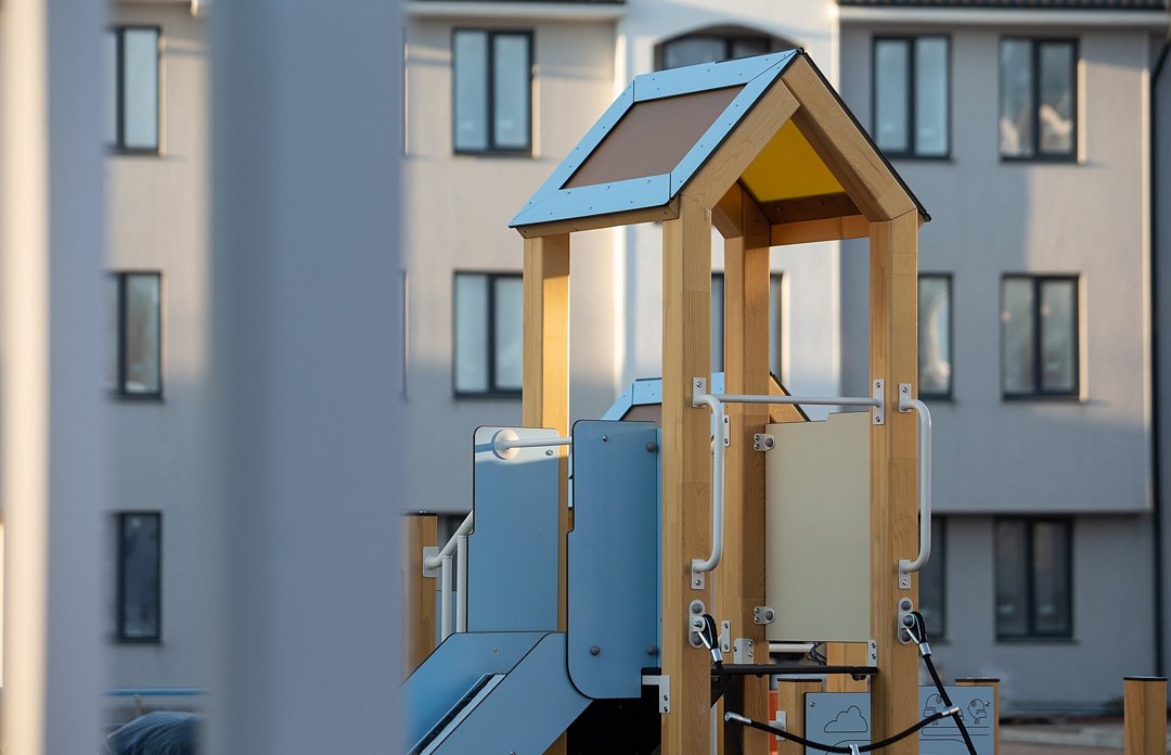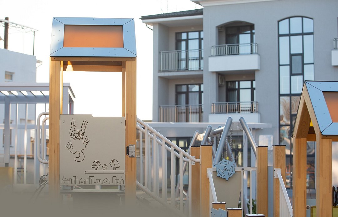 Все элементы выполнены из экологичных, безопасных материалов, устойчивых к климатическим воздействиям. Площадка рассчитана на детей разных возрастов и станет местом, где каждый найдет что-то интересное для себя.