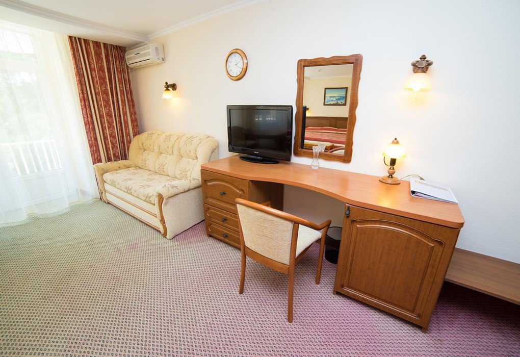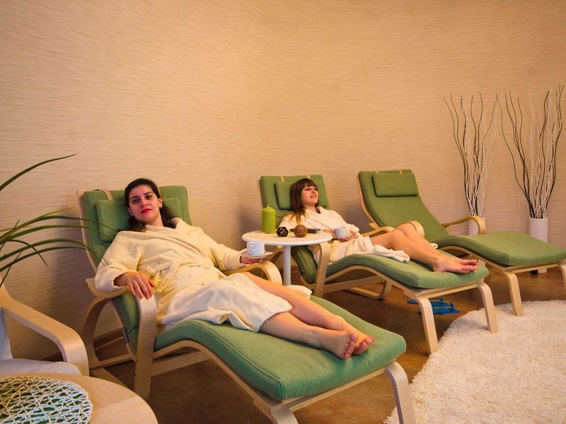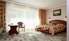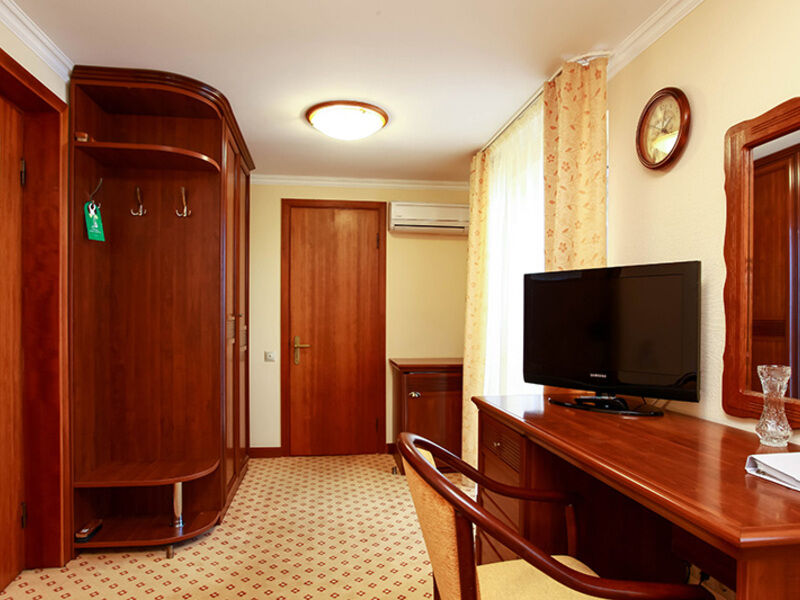 Хорошие процедуры (ванны, грязи, как заявлено), великолепный спа-комплекс с разными видами бань, бассейном-джакузи, спортзал. Отличный бассейн под открытым небом. Не очень большая территория санатория, зато большая зона парковки. Есть детская площадка, теннисный корт. Вкусные кислородные коктейли и полезные чаи. Отдельные чаепития по вечерам со сладушками. Хороший ресторан - шведский стол, питание неплохое для санатория. Но есть несколько блюд, фрукты, салаты. Раньше было спиртное, сейчас уже нет.
