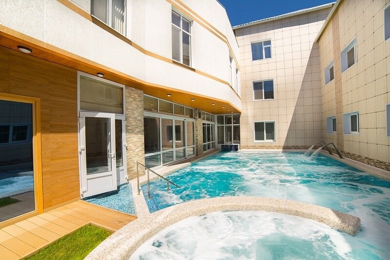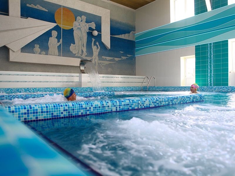 Читать полностьюКрытый бассейн пансионата расположен на втором этаже лечебного корпуса, в капитальном здании. Бассейн функционирует сезонно, открыт для посещения весной, осенью и зимой, предназначен для свободного посещения и групповых занятий гидрокинезотерапией (лечебной подводной гимнастикой). Во время свободного посещения периодически включается установка, создающая эффект жемчужных ванн.
