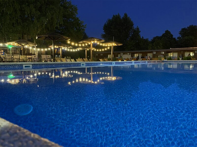 Тип бассейна: открытый бассейнРядом с бассейном: шезлонги, зонтикиПериод работы: летний сезонДетское отделение бассейна
