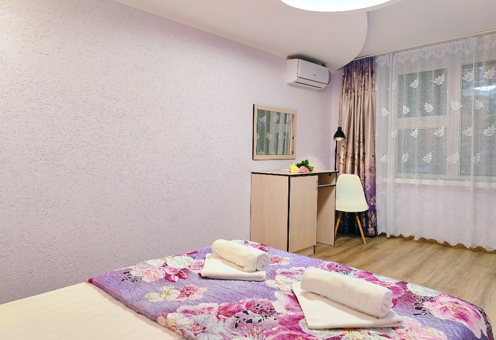 2-х спальная кровать, встроенный шкаф для одежды, тумбочки или журнальный столик, сплит система, мини холодильник, тв, чайник, кружки, набор одноразовой косметики (гель, шампунь, мыло).