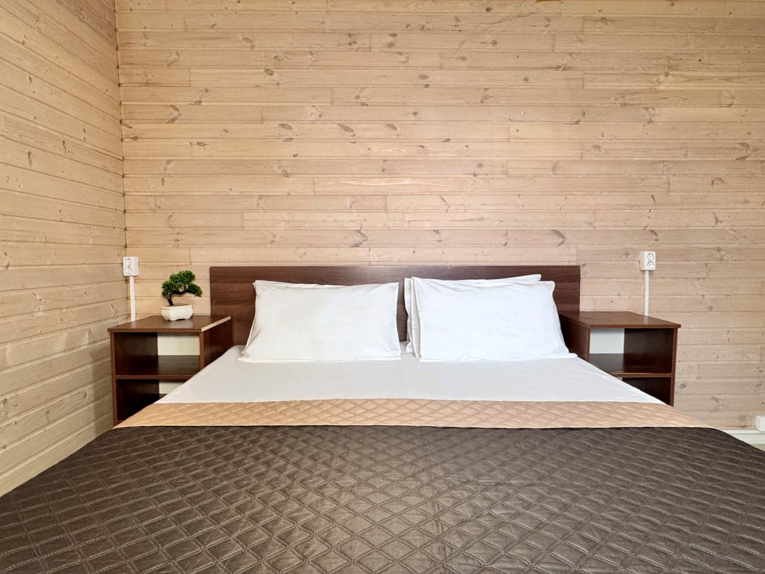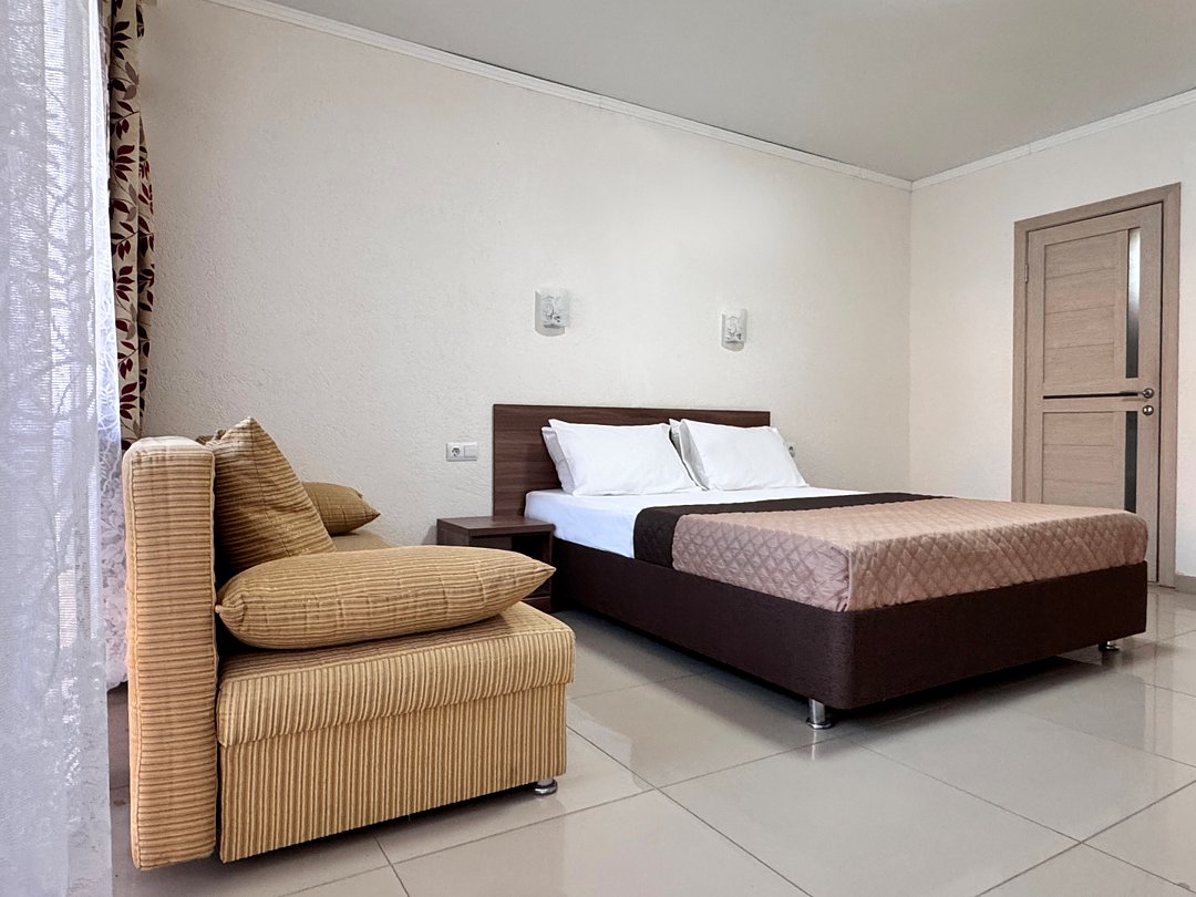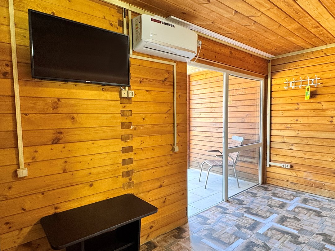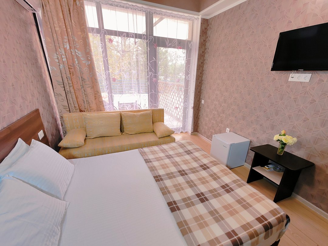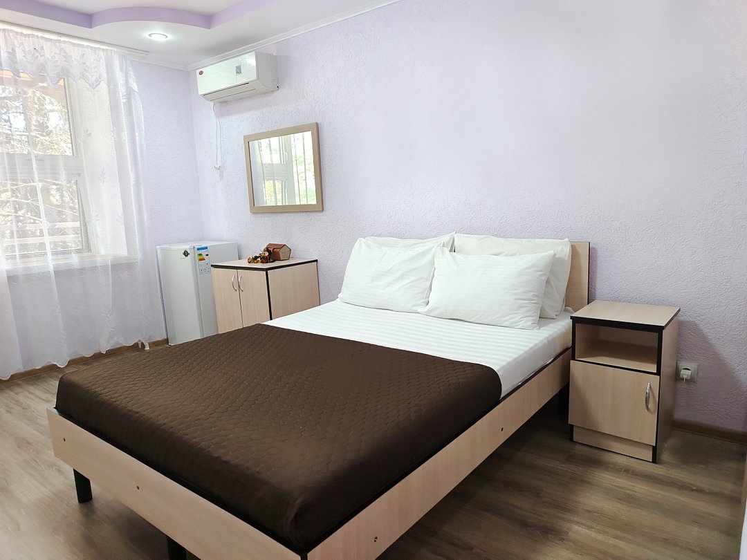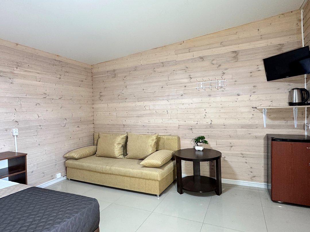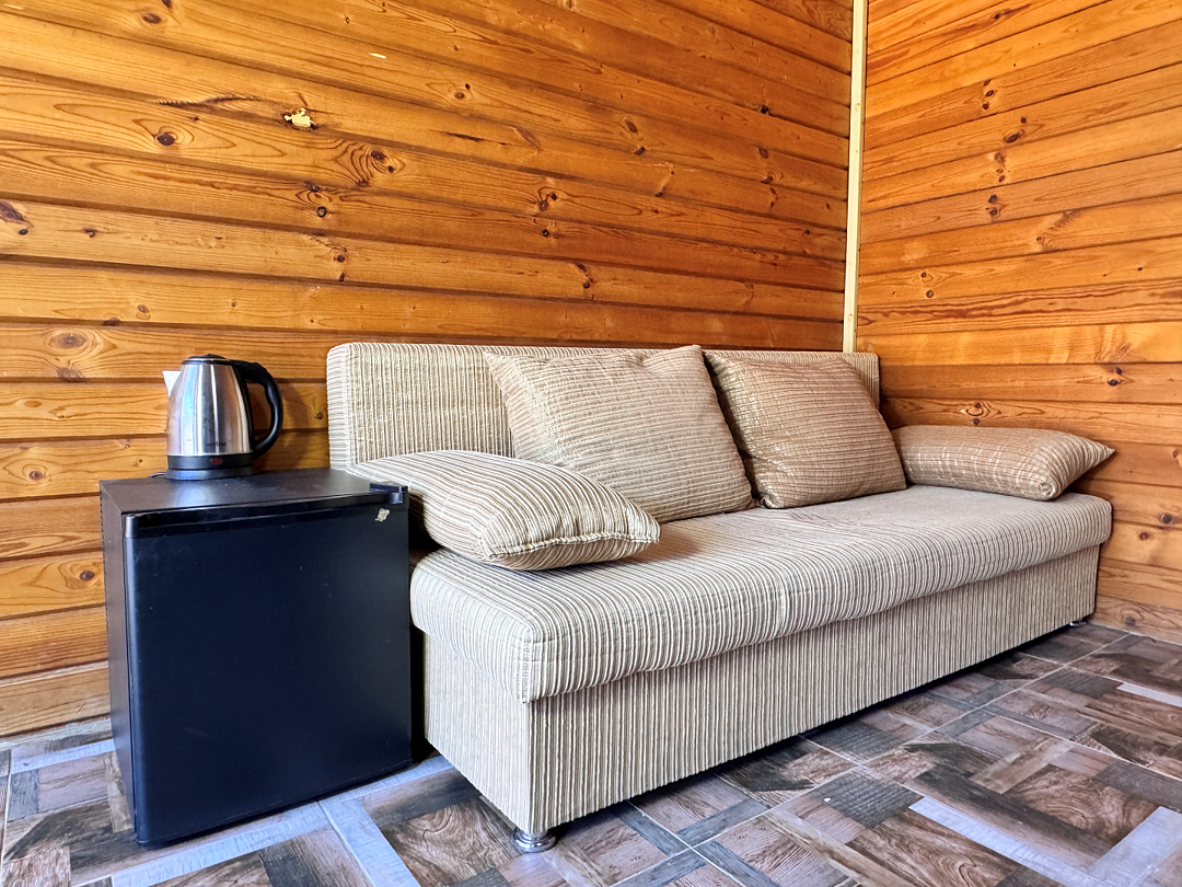В номере: двуспальная кровать, односпальный диван, прикроватные тумбочки,журнальный столик, шкаф,вешалки,зеркало, телевизор, кондиционер, мини-холодильник, электрочайник, набор посуды. Ванная комната: душ, раковина, зеркало, туалет, сушилка для одежды. Индивидуальная зона отдыха с отдельным входом в номер. (Проживание с животными разрешено до 10 кг)В номере: двуспальная кровать, односпальный диван, прикроватные тумбочки,журнальный столик, шкаф,вешалки,зеркало, телевизор, кондиционер, мини-холодильник, электрочайник, набор посуды. Ванная комната: душ, раковина, зеркало, туалет, сушилка для одежды. Индивидуальная зона отдыха с отдельным входом в номер.