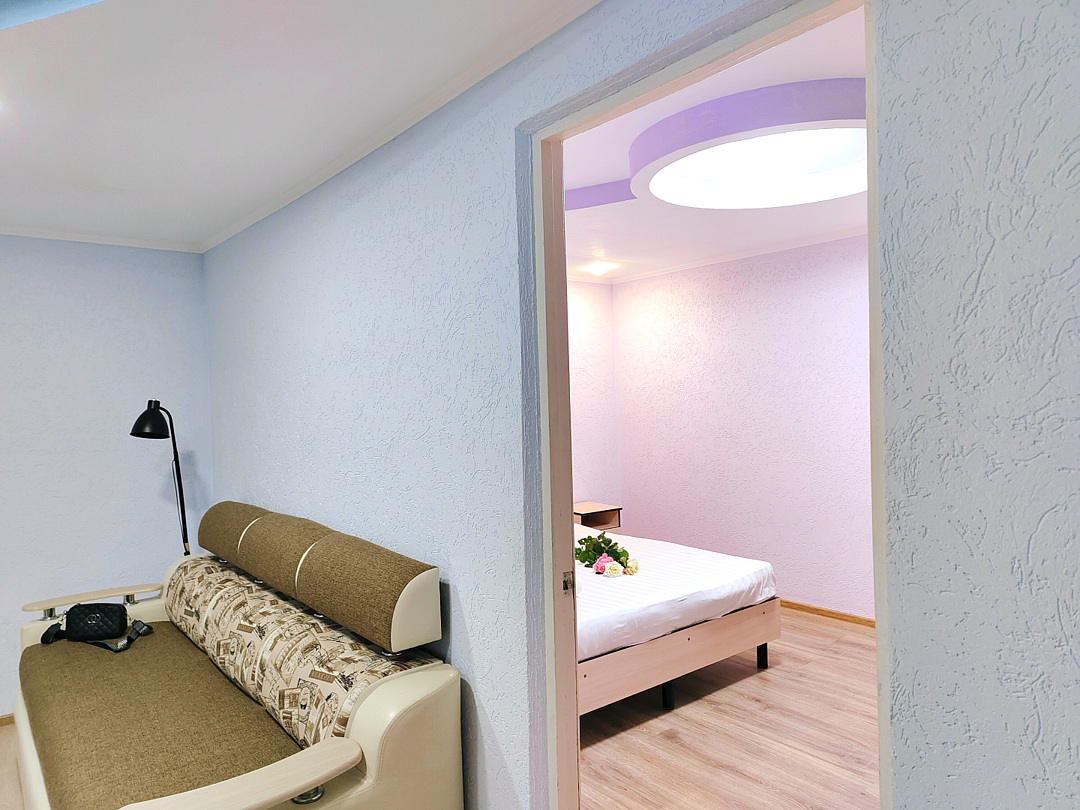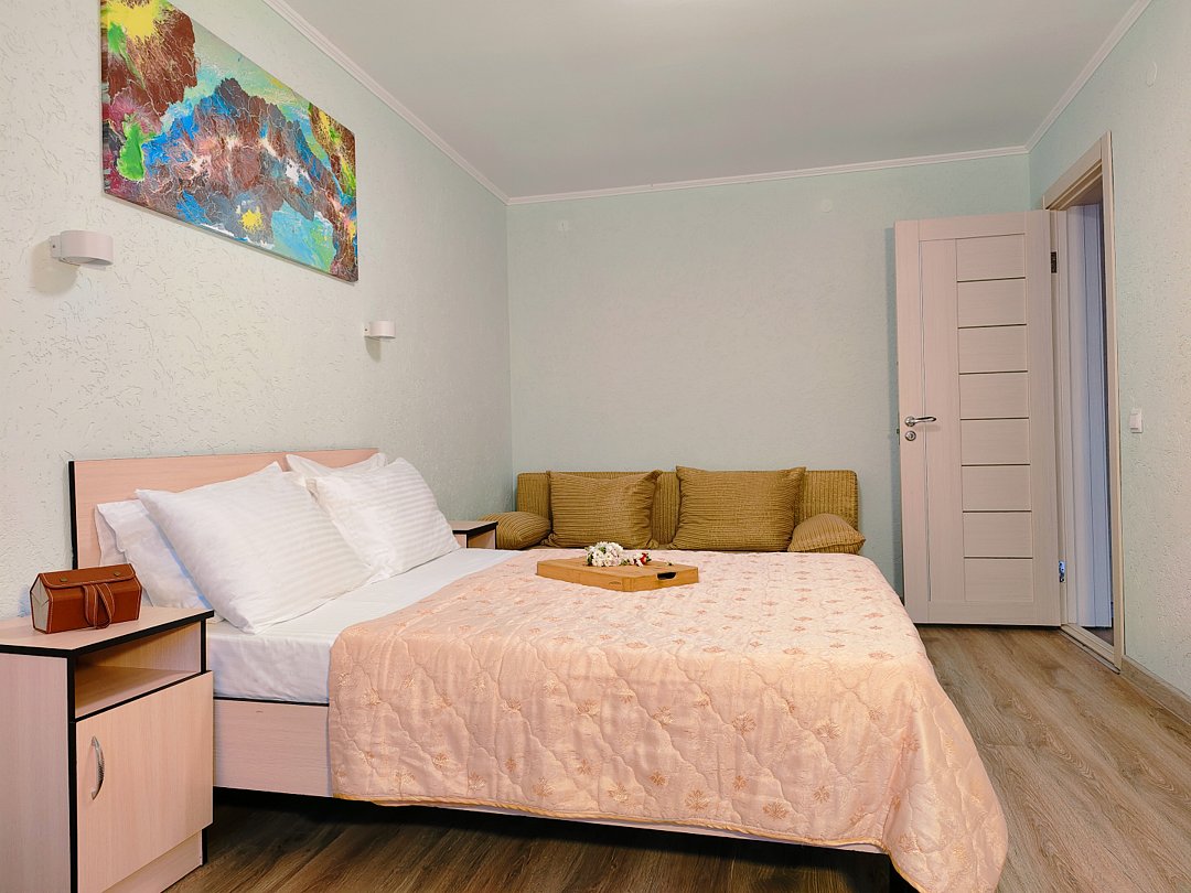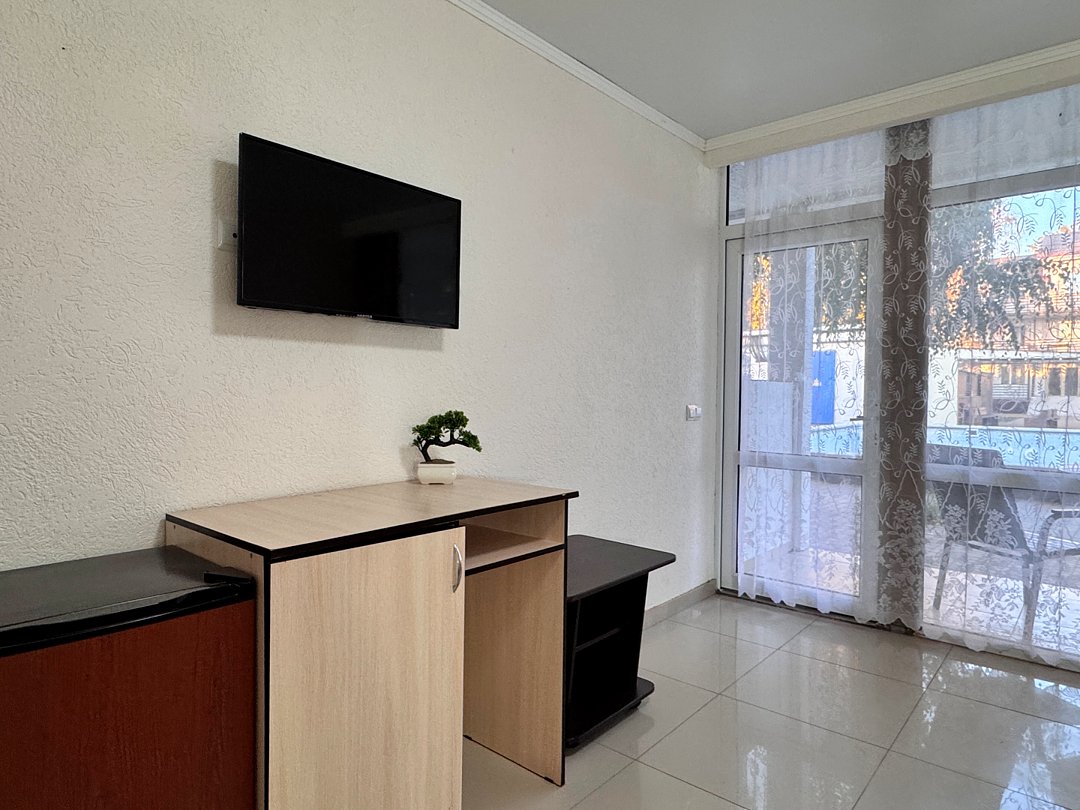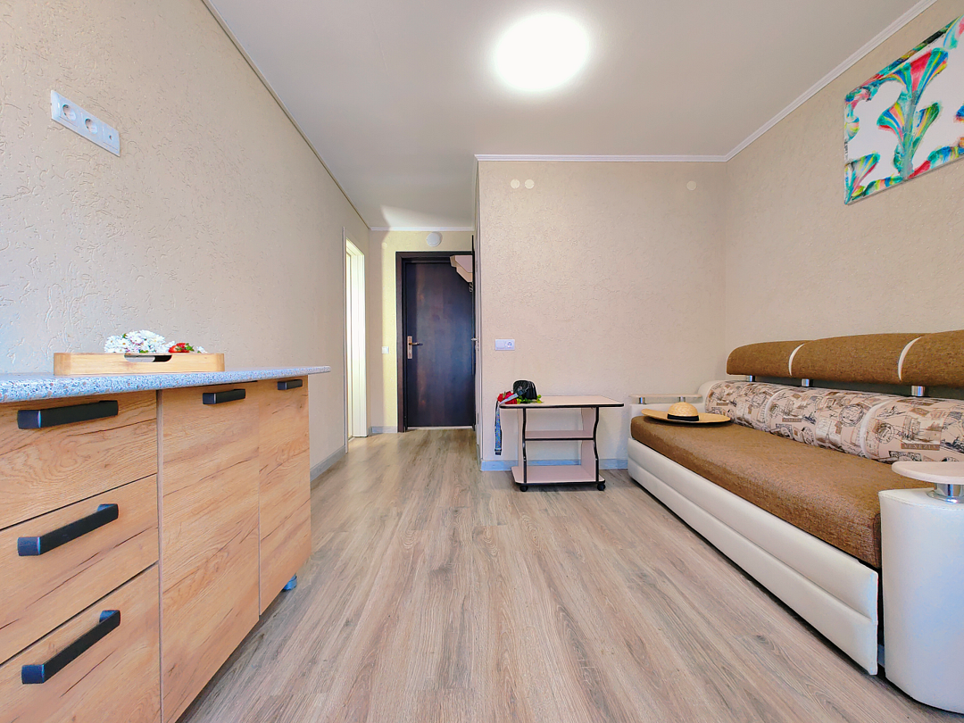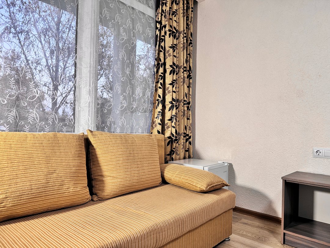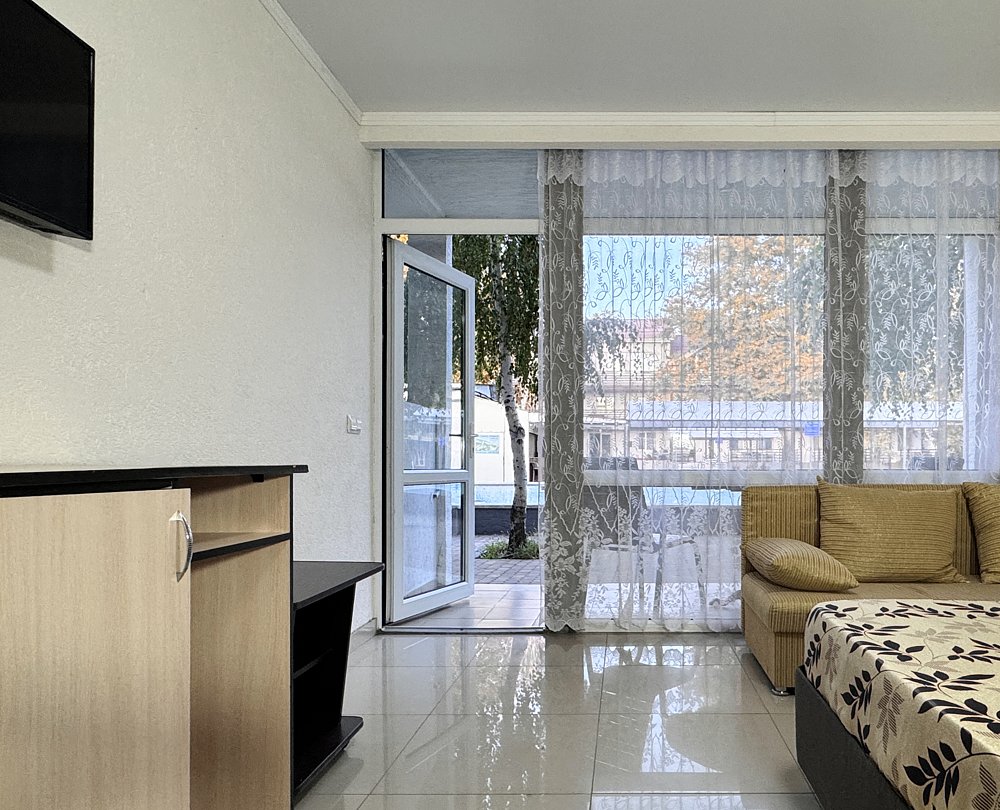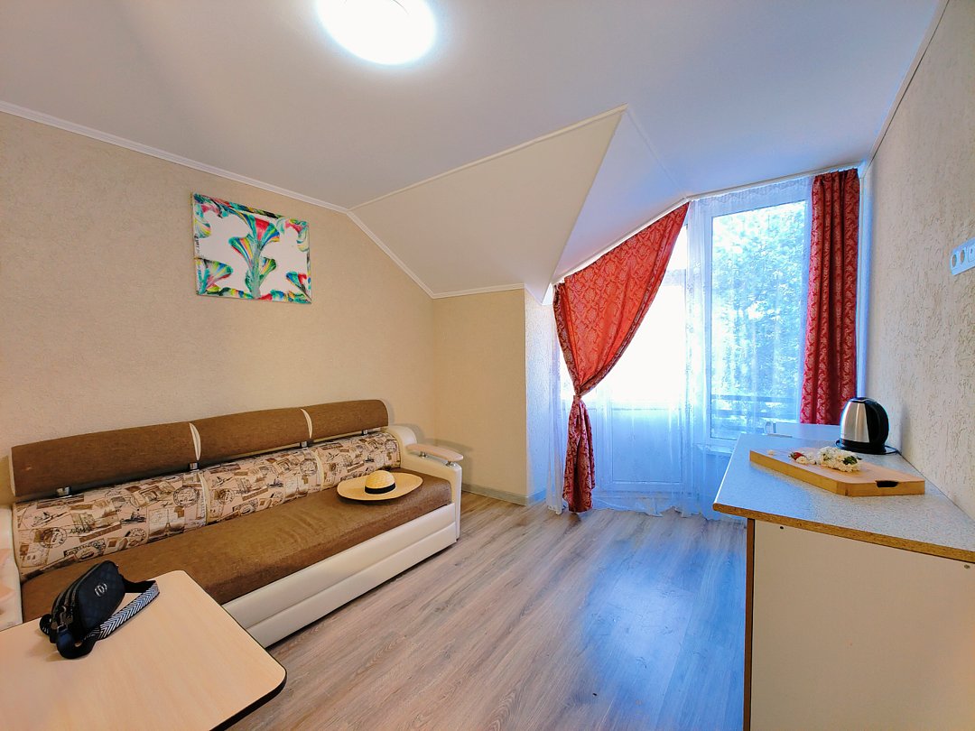 В номере: двуспальная кровать, односпальный диван, прикроватные тумбочки,журнальный столик, шкаф,вешалки,зеркало, телевизор, кондиционер, мини-холодильник, электрочайник, набор посуды. Ванная комната: душ, раковина, зеркало, туалет, сушилка для одежды. Индивидуальная зона отдыха с отдельным входом в номер. (Проживание с животными разрешено до 10 кг)В номере: двуспальная кровать, односпальный диван, прикроватные тумбочки,журнальный столик, шкаф,вешалки,зеркало, телевизор, кондиционер, мини-холодильник, электрочайник, набор посуды. Ванная комната: душ, раковина, зеркало, туалет, сушилка для одежды. Индивидуальная зона отдыха с отдельным входом в номер.