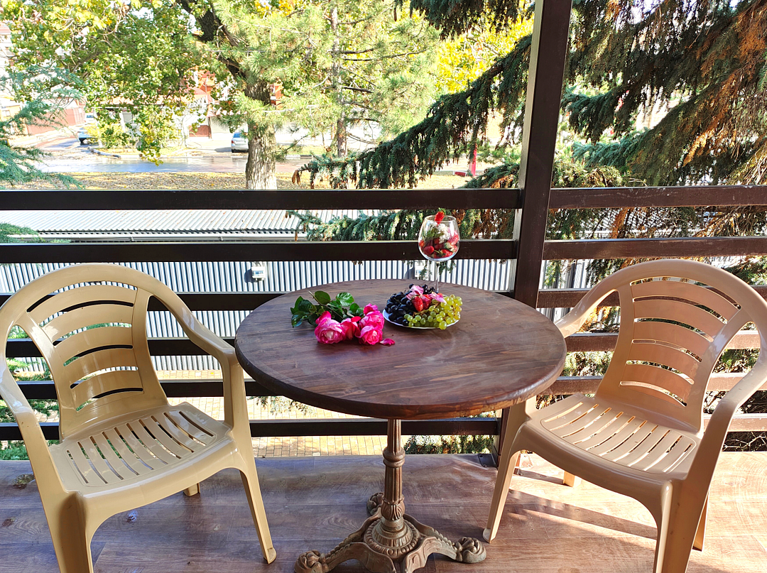 В номере: двуспальная кровать, прикроватные тумбочки,журнальный столик, шкаф,вешалки,зеркало, телевизор, кондиционер, мини-холодильник, электрочайник, набор посуды. Ванная комната: душ, раковина, зеркало, фен, туалет, сушилка для одежды. Балкон с летней мебелью (Проживание с животными запрещено)В номере: двуспальная кровать, прикроватные тумбочки,журнальный столик, шкаф,вешалки,зеркало, телевизор, кондиционер, мини-холодильник, электрочайник, набор посуды. Ванная комната: душ, раковина, зеркало, фен, туалет, сушилка для одежды. Балкон с летней мебелью