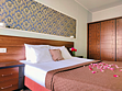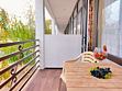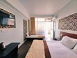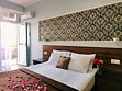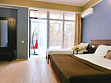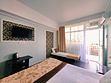 В номере: двуспальная кровать, прикроватные тумбочки,журнальный столик, шкаф,вешалки,зеркало, телевизор, кондиционер, мини-холодильник, электрочайник, набор посуды. Ванная комната: душ, раковина, зеркало, фен, туалет, сушилка для одежды. Балкон с летней мебелью