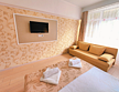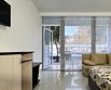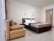 В номере: двуспальня кровать, двуспальный диван, прикроватные тумбочки,журнальный столик, шкаф,вешалки,зеркало, телевизор, кондиционер, мини-холодильник, электрочайник, набор посуды. Ванная комната: душ, раковина, зеркало, фен, туалет, сушилка для одежды. Балкон с летней мебелью