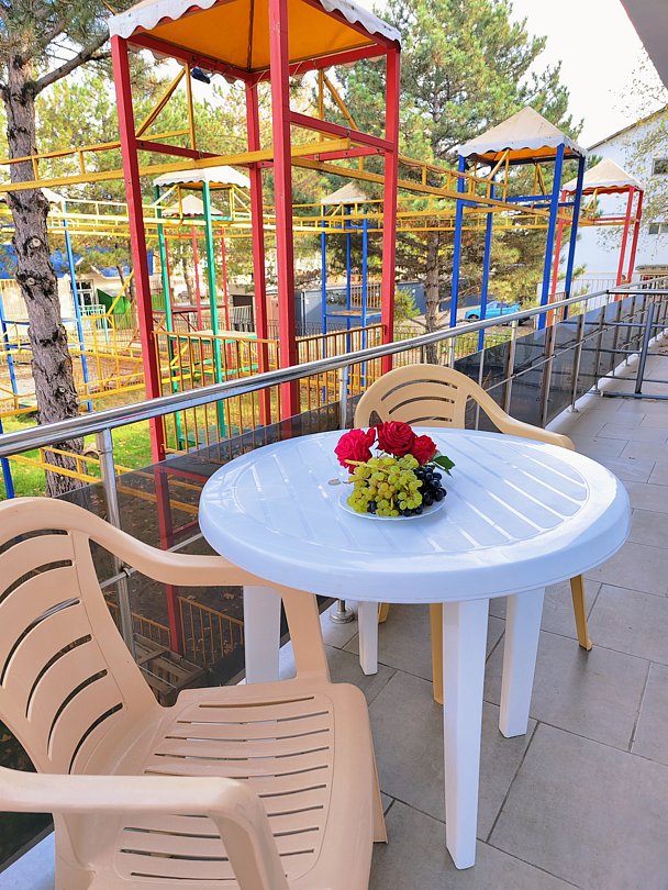 На территории пансионата имеется веранда где проводят игры в настольные игры и занятия по изобразительному искусству с детьми .Услуга включена в анимационную программу.