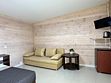 В номере: двуспальная кровать, односпальный диван, прикроватные тумбочки,журнальный столик, шкаф,вешалки,зеркало, телевизор, кондиционер, мини-холодильник, электрочайник, набор посуды. Ванная комната: душ, раковина, зеркало, туалет, сушилка для одежды. Индивидуальная зона отдыха с отдельным входом в номер.