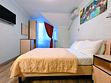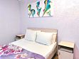В первой комнате: односпальная кровать, двуспальная кровать, прикроватные тумбочки,комод, шкаф,вешалки,зеркало, телевизор, кондиционер. Во второй комнате: двуспальный диван, телевизор, кондиционер, мини-холодильник, электрочайник, набор посуды. Ванная комната: душ, раковина, зеркало, фен, туалет, сушилка для белья. Терраса с летней мебелью