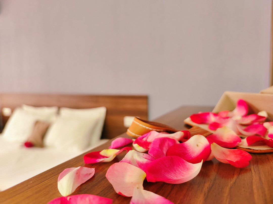 В номере: двуспальная кровать, односпальный диван, прикроватные тумбочки,журнальный столик, комод, шкаф,вешалки,зеркало, телевизор, кондиционер, мини-холодильник, электрочайник, набор посуды. Ванная комната: душ, раковина, зеркало, фен, туалет, сушилка для одежды. Зона отдыха перед входом в номер.