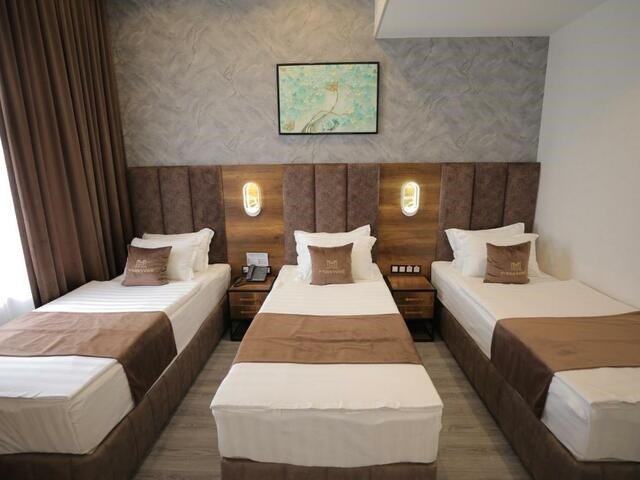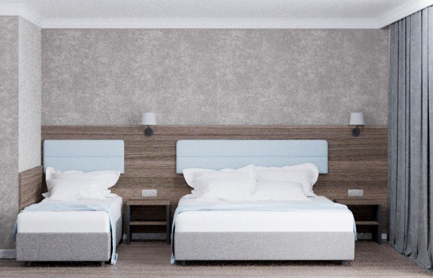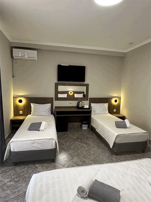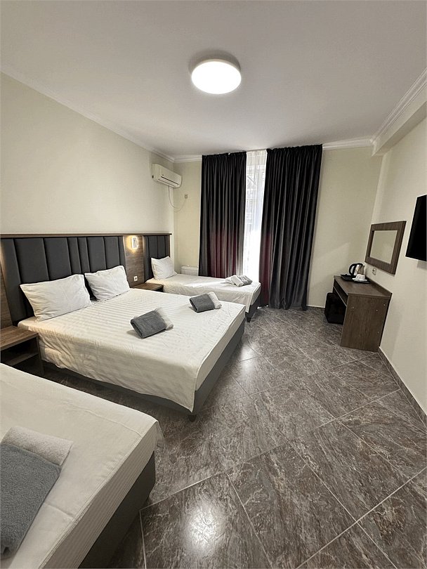 Номера категории “Трехместный”, рассчитаны на комфортное размещение 3x человек. Предусмотрено дополнительное спальное место. Номер прекрасно подойдет для размещения пары с детьми.Услуги и удобства