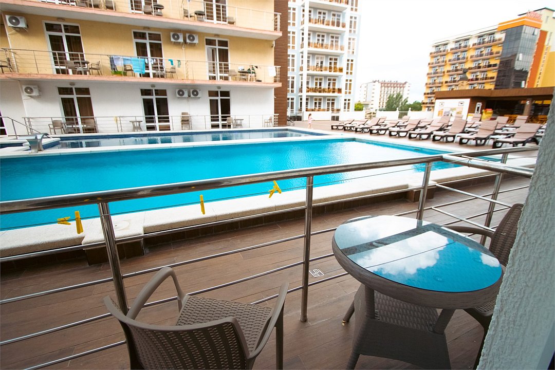 Тип бассейна: открытый бассейнВода в бассейне: подогреваемый бассейнРядом с бассейном: шезлонги, бар у бассейнаВремя работы: от 08:00 до 23:00Бассейн с детским отделением работает сезонно: 20.05 – 20.09.