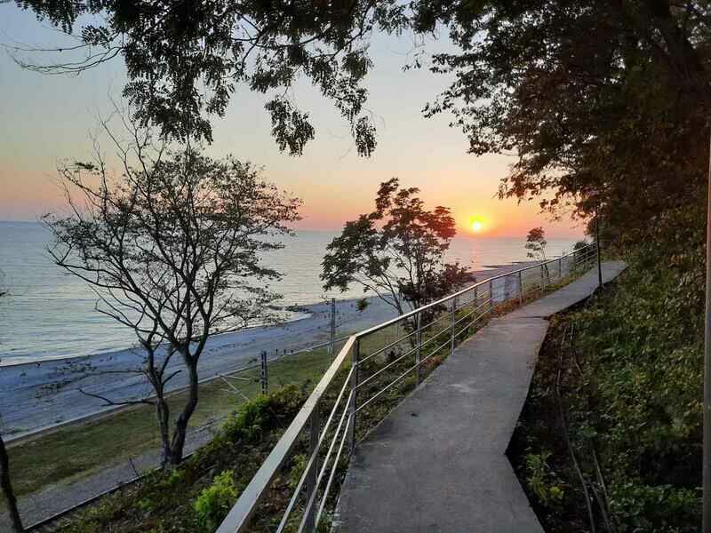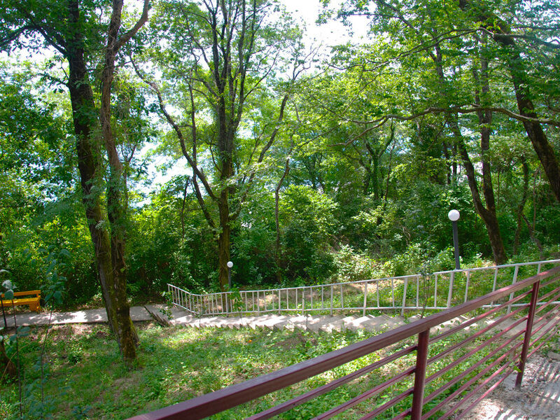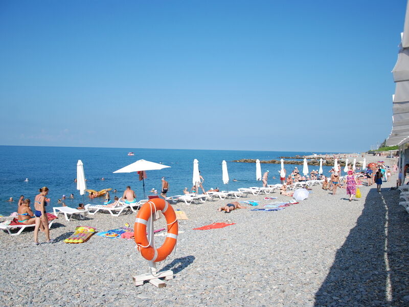 Пансионат находится вдали от автотрасс. До городского пляжа всего сто метров. До поселкового пляжа 600 метров. Оба они галечные. Здесь все оборудовано для отличного отдыха.