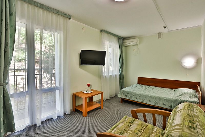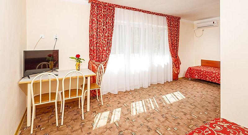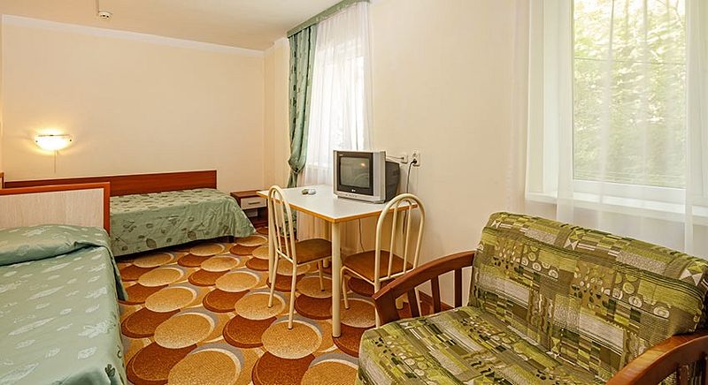 На территории пансионата расположены 4 современных корпуса, оборудованных всем необходимым для комфортного проживания. 330 гостей смогут насладиться уютными номерами, оснащённых необходимыми для проживания удобствами и полюбоваться видом, открывающимся с балкона.