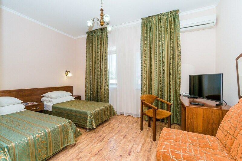 Семейный отдыхДостоинстваОчень хорошая локация, приветливый персонал, тихая расслабляющая атмосфера, близко от пляжа. И вообще впечатление от Анапы прекрасное. Получили массу приятных эмоций.