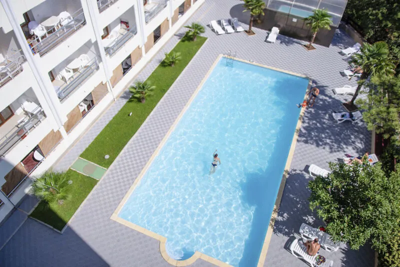 Жилой фонд гостиницы размещается в шестиэтажном здании с лифтом и 4-х этажном коттедже (лифта нет). Номера для постояльцев категорий «полулюкс» и «повышенный комфорт», «стандарт» и «эконом», способны одновременно вместить до 250 человек. В их распоряжении – необходимая мебель, холодильник, ТВ и Wi-Fi, основная часть из них оборудована кондиционерами. Из номеров, выходящих на юг, видны море и бассейн, из северных – парк.