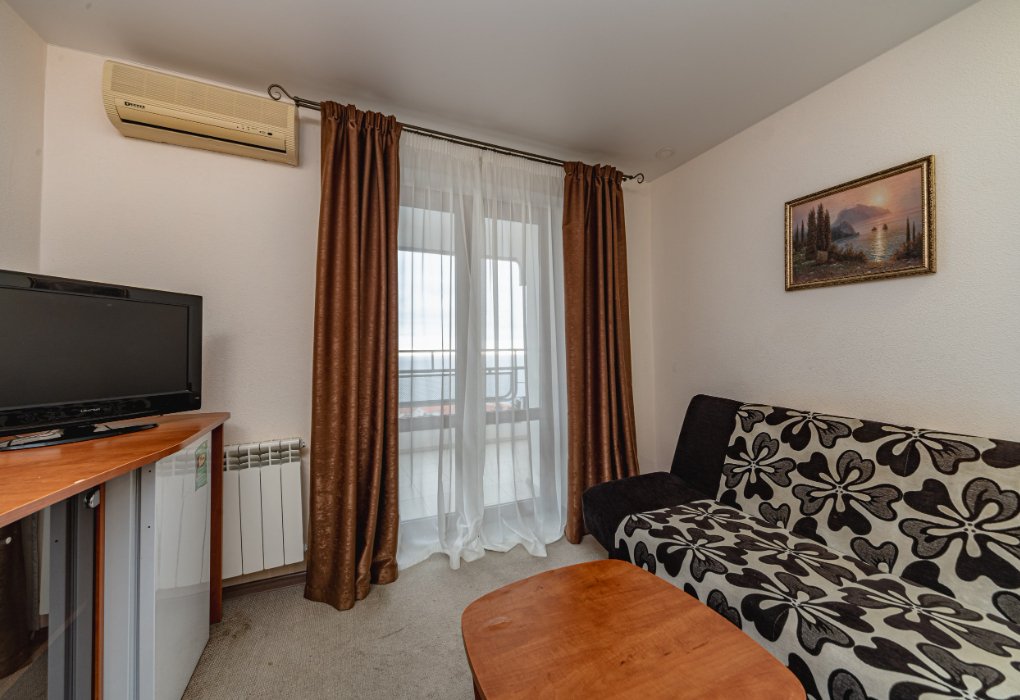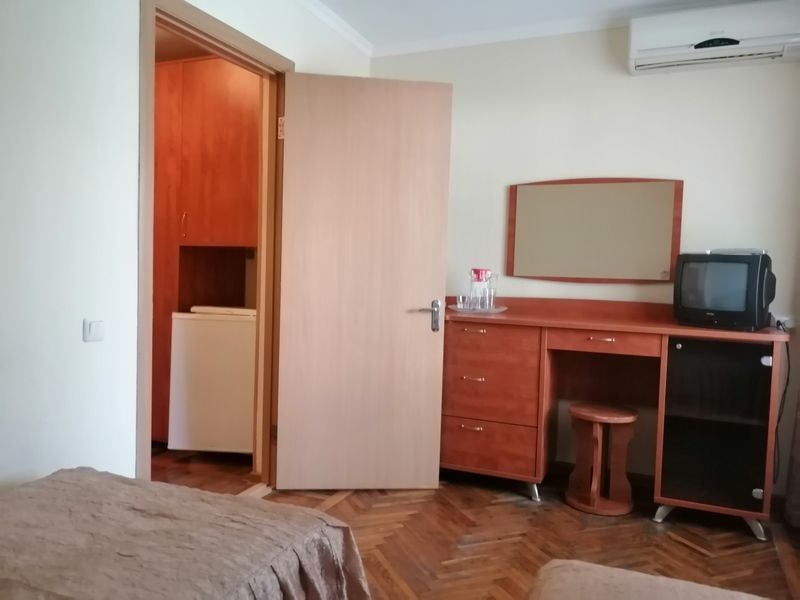 Лечение и оздоровлениеДостоинстваВпечатления от отеля хорошие. Номер был чистый с ковровым покрытием, очень уютный. Вид на море просто шикарный. Было два балкона, двуспальная кровать очень большая. Работала вся техника. Было тепло, несмотря на осень, но присутствовал на всякий случай кондиционер. В сезон не было шведского стола, но это не страшно. Готовили всё равно вкусно. Персонал добрый. Расположение хорошее, все нужное поблизости.