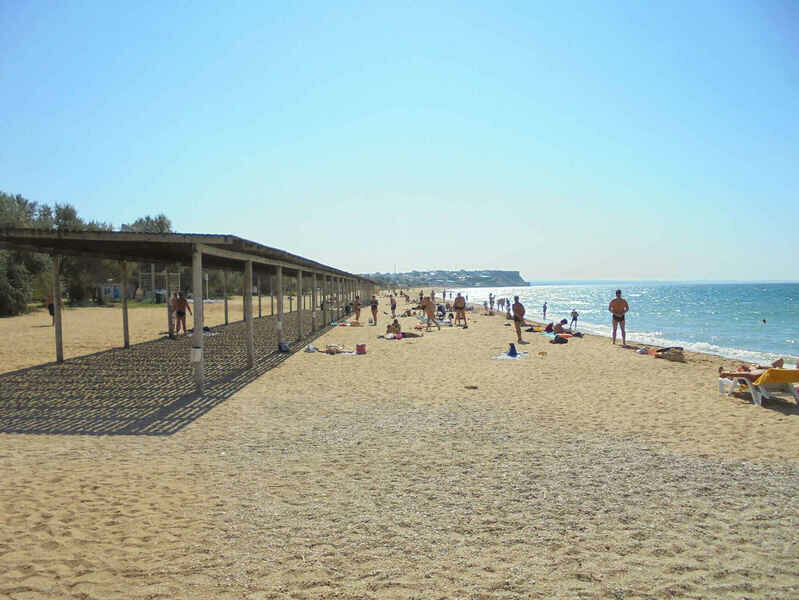 Песчано–галечный с плавным заходом в море, 5–10 минут пешком от пансионата. На пляже есть раздевалки, душевые, туалет, кафе, магазины, столовая, детские игровые центры, салон красоты, аптека и т.д.