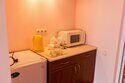 Кондиционер, телевизор, большой раскладывающийся диван, торшер, кресла, журнальный столик, шкаф с зеркалом, душевая кабина (бойлерная система нагрева воды), унитаз, умывальник, настенное зеркало, ванные принадлежности.
