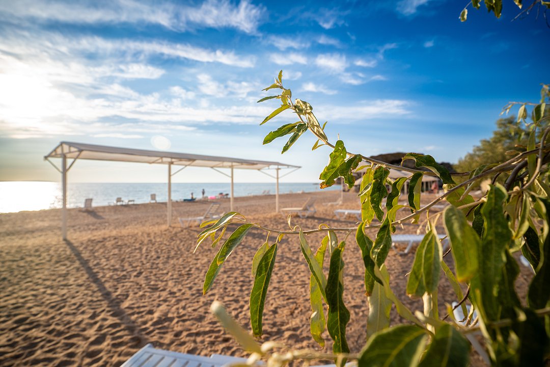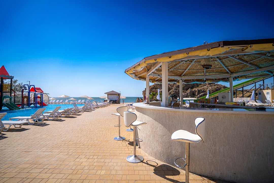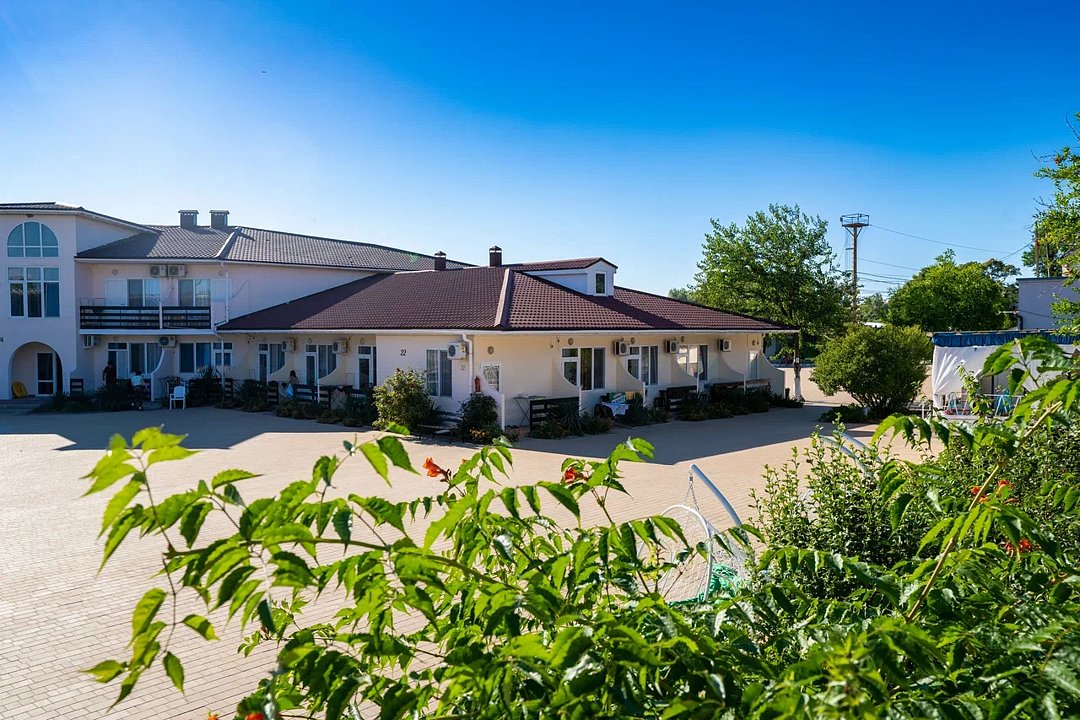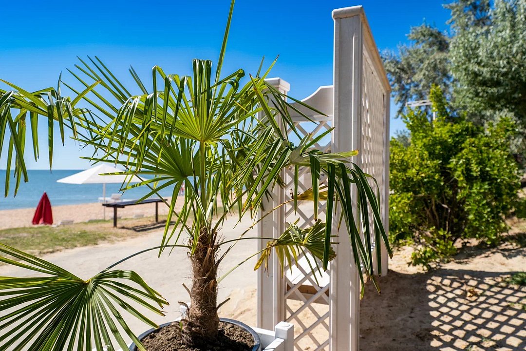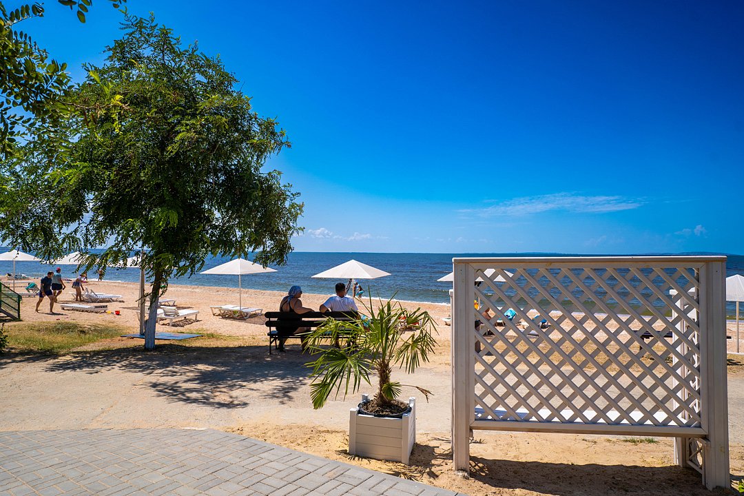 Семейный отель «АзовЛенд» расположен на самом берегу Азовского моря в 40 км от Керчи вблизи легендарных Генеральских пляжей.