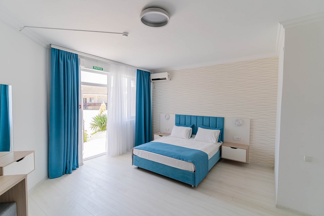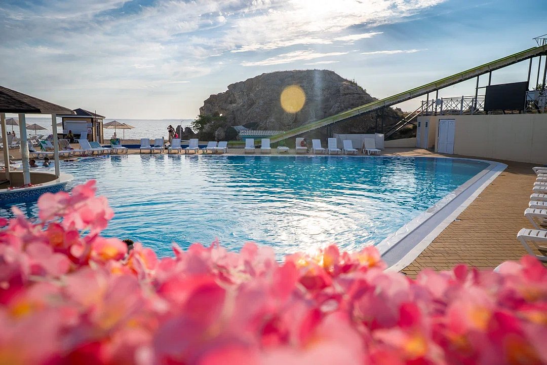 Отель находится в уединенном спокойном месте в окружении живописных бухт и бескрайних просторов. Его окружают удивительные пейзажи и бескрайнее чистое море. От Крымского моста до него можно доехать за 40 минут.