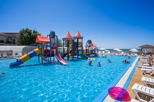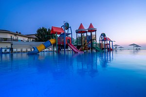 Я отдыхала одна с детьми, поэтому для меня было важно то, чтобы все было на виду. Аквапарк удобен, там маленькая глубина. Можно немного отдохнуть рядом на лежаке, пока дети плещутся. На пляже надувной батут , поэтому можно заниматься аквааэробикой, наблюдая за своими прыгающими детьми)) вечером включают красивые фонтаны, Детская дискотека, ее всегда очень ждали). Почти всегда можно взять мороженое, лимонад, вино, пиво, блинчики. Пляж просто отличнейший! На ресепшн всегда стремились помочь. Иногда организуют экскурсии. Понравилось, что есть как бы два пляжа - пошумнее и потише. Всегда есть свободные лежаки. В целом в отеле присутствует атмосфера простоты и душевности. Семейный отдых в очень хорошем качестве.