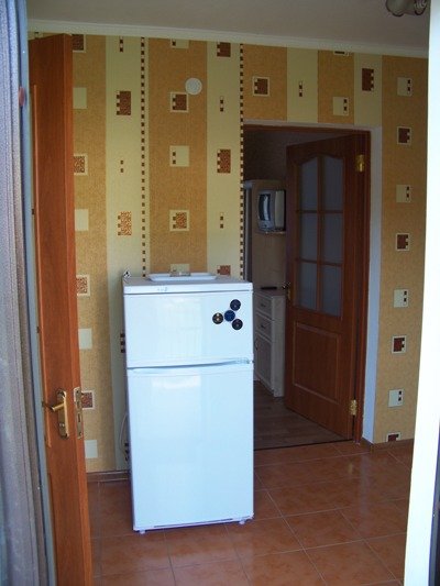 Прихожая — кухня: оборудованная кухня, холодильник, электрочайник.