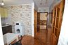 Прихожая-кухня: оборудованная кухня, холодильник, электрочайник, микроволновка, обеденный стол.