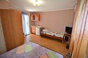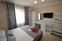 В комнате находится двуспальная кровать, кресло раскладное, телевизор, кондиционер, набор мебели.