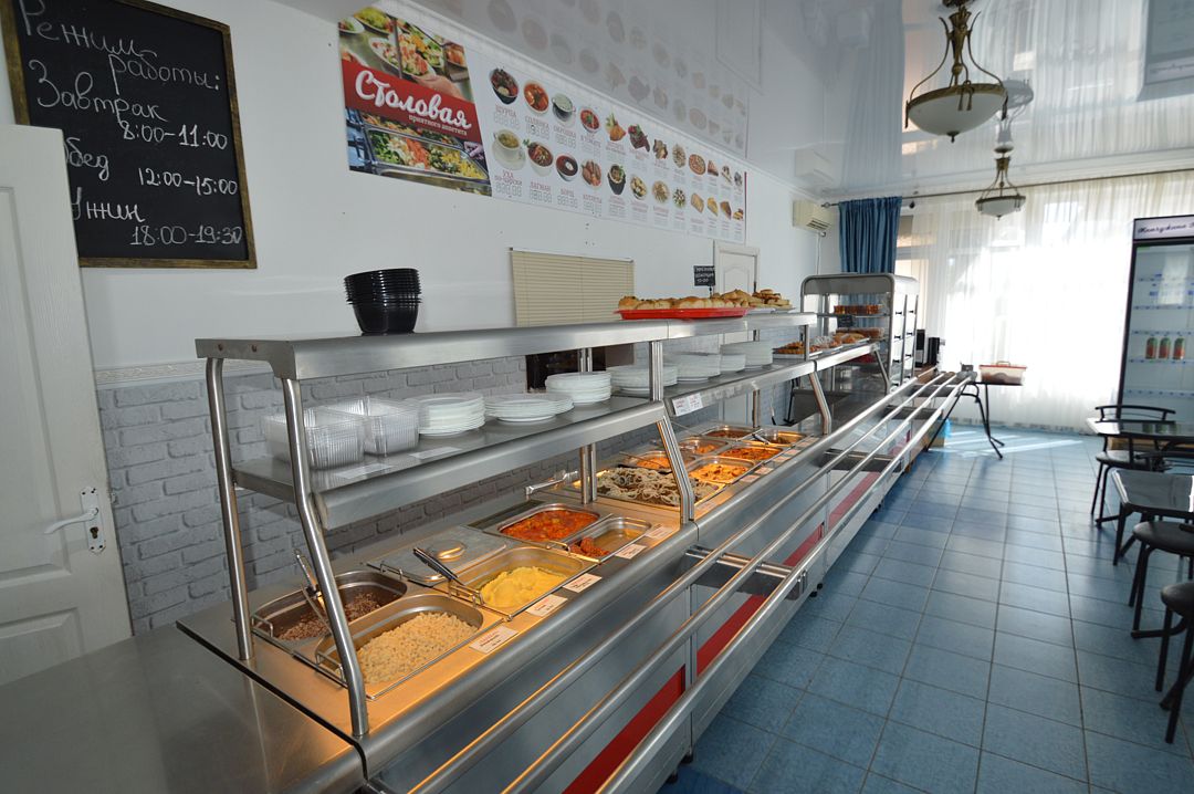 Уютная столовая с линией раздачи приглашает гостей в увлекательное кулинарное путешествие по лучшим традициям крымской и авторской кухни. Здесь вас ждет настоящее изобилие: от ароматных супов и пикантных вторых блюд до искусно приготовленных салатов, морепродуктов, выпечки и восхитительных десертов.