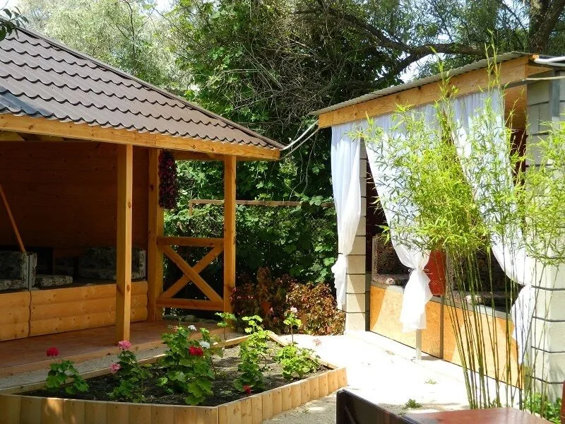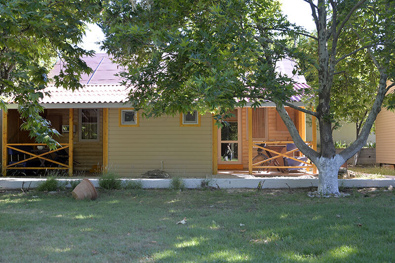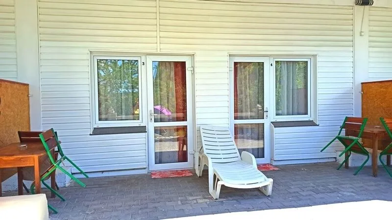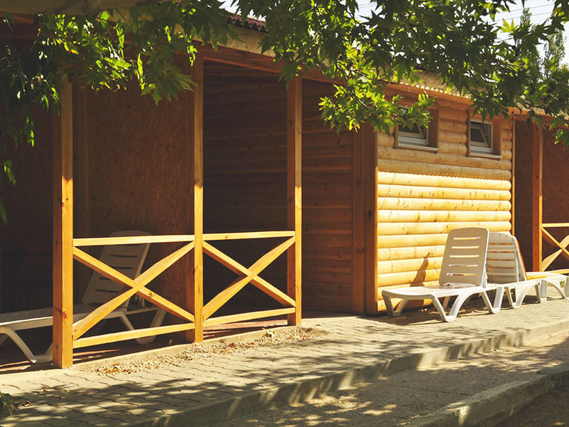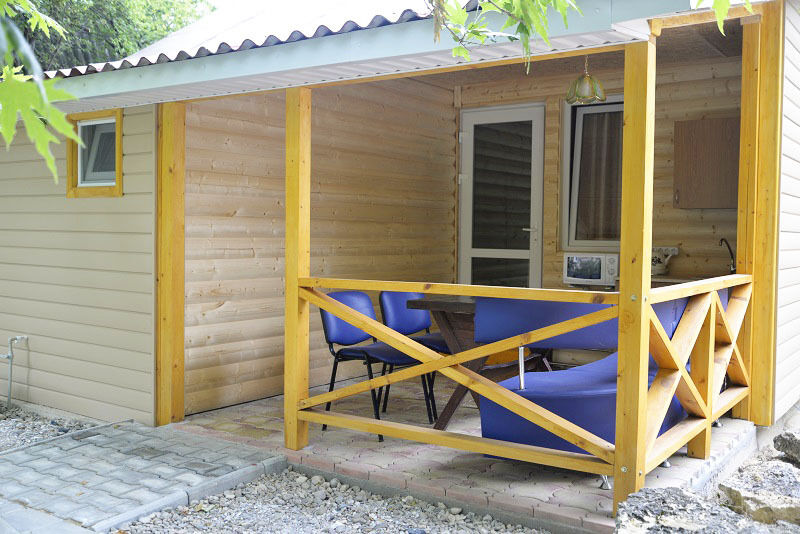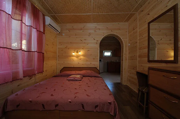 Одноэтажные коттеджи из дерева с 1-но, 2-х и 3-х местными номерами, с отдельными выходами на террасу с мебелью для отдыха.